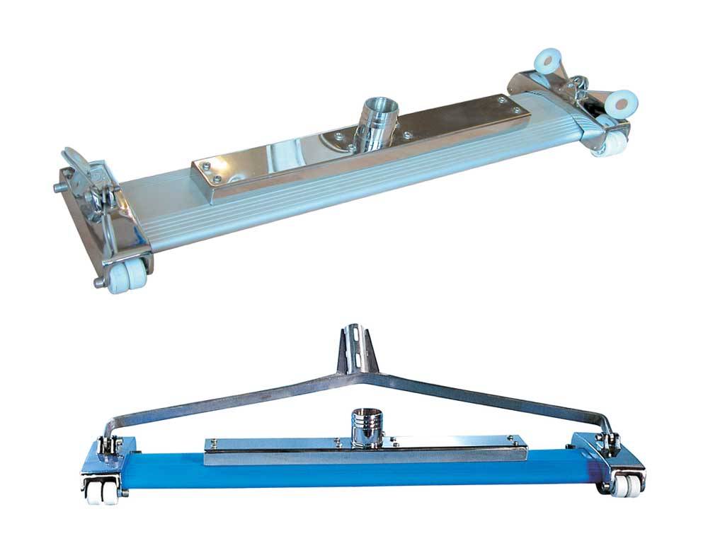 Geniş Açıklıklı Beton havuzlar için. Alüminyum gövde. Tekerlek grubu ve hortum bağlantısı paslanmaz çelikten mamul. 2” hortum ba¤lantısı. Süpürge tarama genişliği, L=80 cm