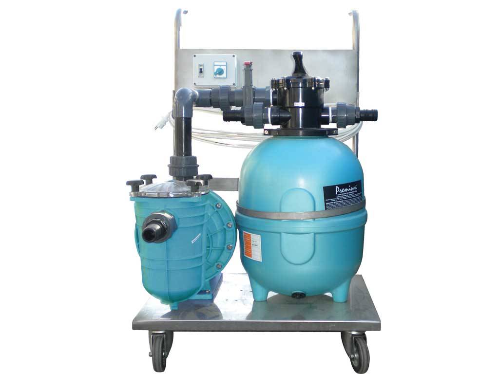 Kum filtresi, kuvars kumu, monofaze self-priming pompası, poolvac süpürgesi, hortumu, çekvalfi, teleskopik sapı ile komple tekerlekli AISI 304 kalite paslanmaz çelik bir araba üzerine montajlıdır. Sigorta ve 18 m kablosu ile birliktedir. Vakum a¤zı olmayan havuzlar için düşünülmüştür. Portatif filtrasyon ünitesi olarak da kullanılabilir. Fiyata filtre kumu dahildir.